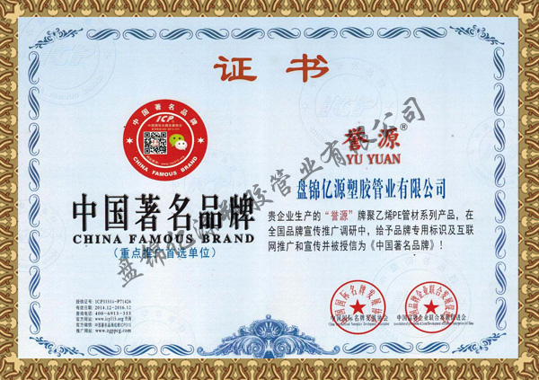 中國著名品牌證書